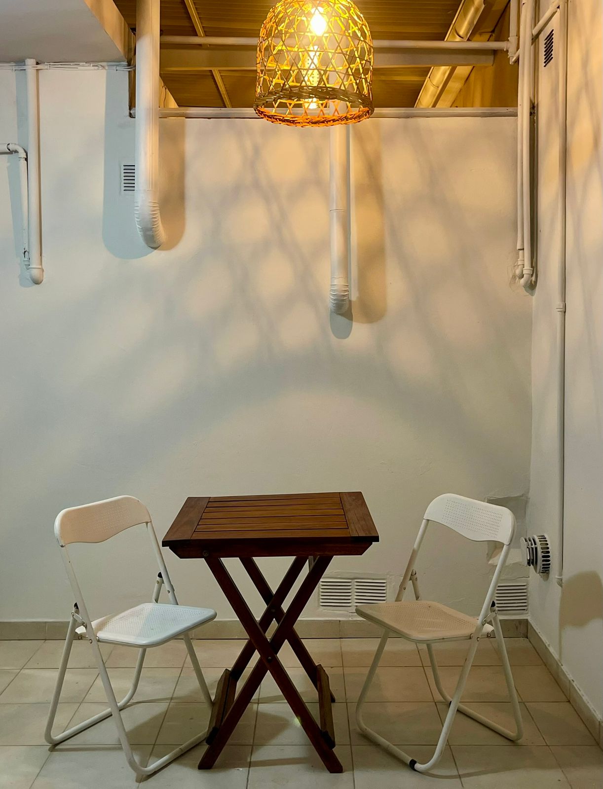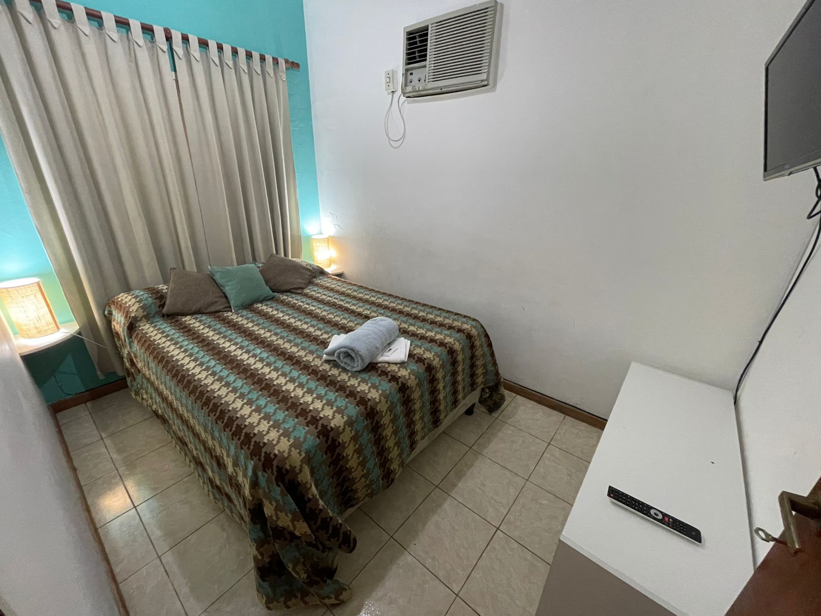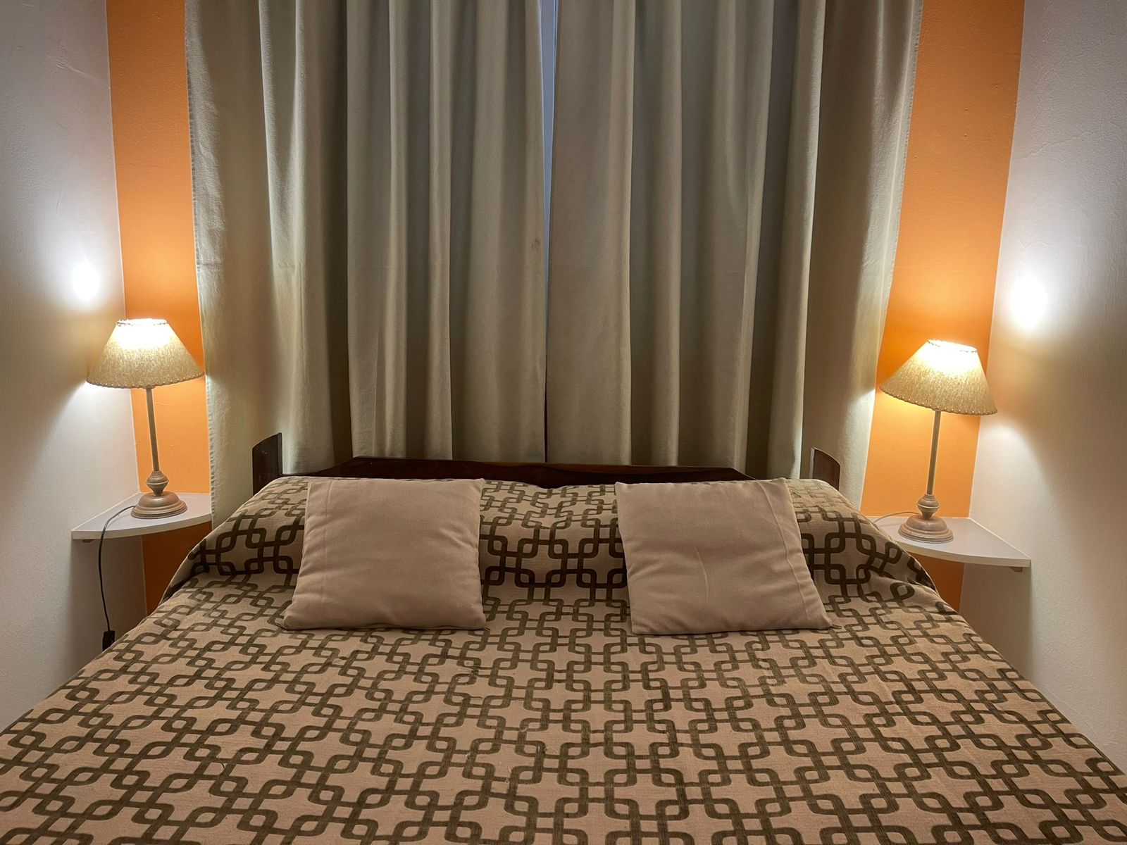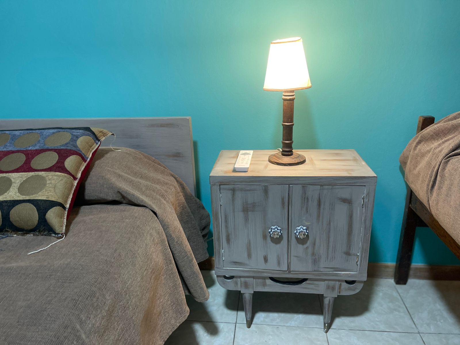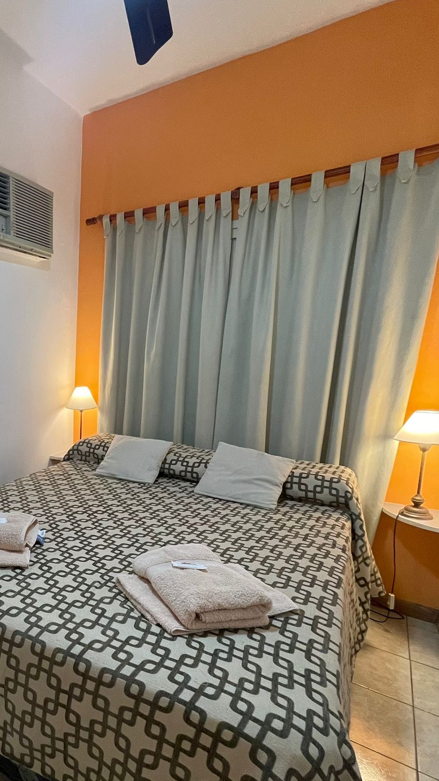 Estar-Comedor: Mesa, sillas, mesada con pileta, cocina con horno, heladera, microondas, pava, cafetera manual, bajo mesada con vajilla, cama simple sommier o sofá cama, ventilador de techo.