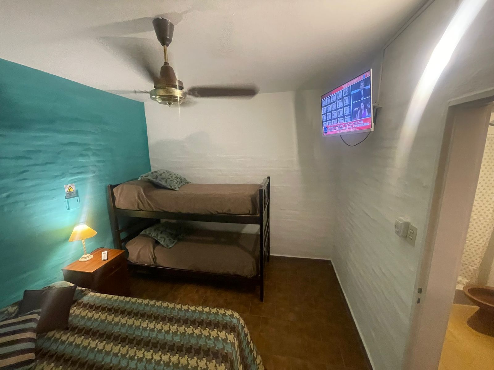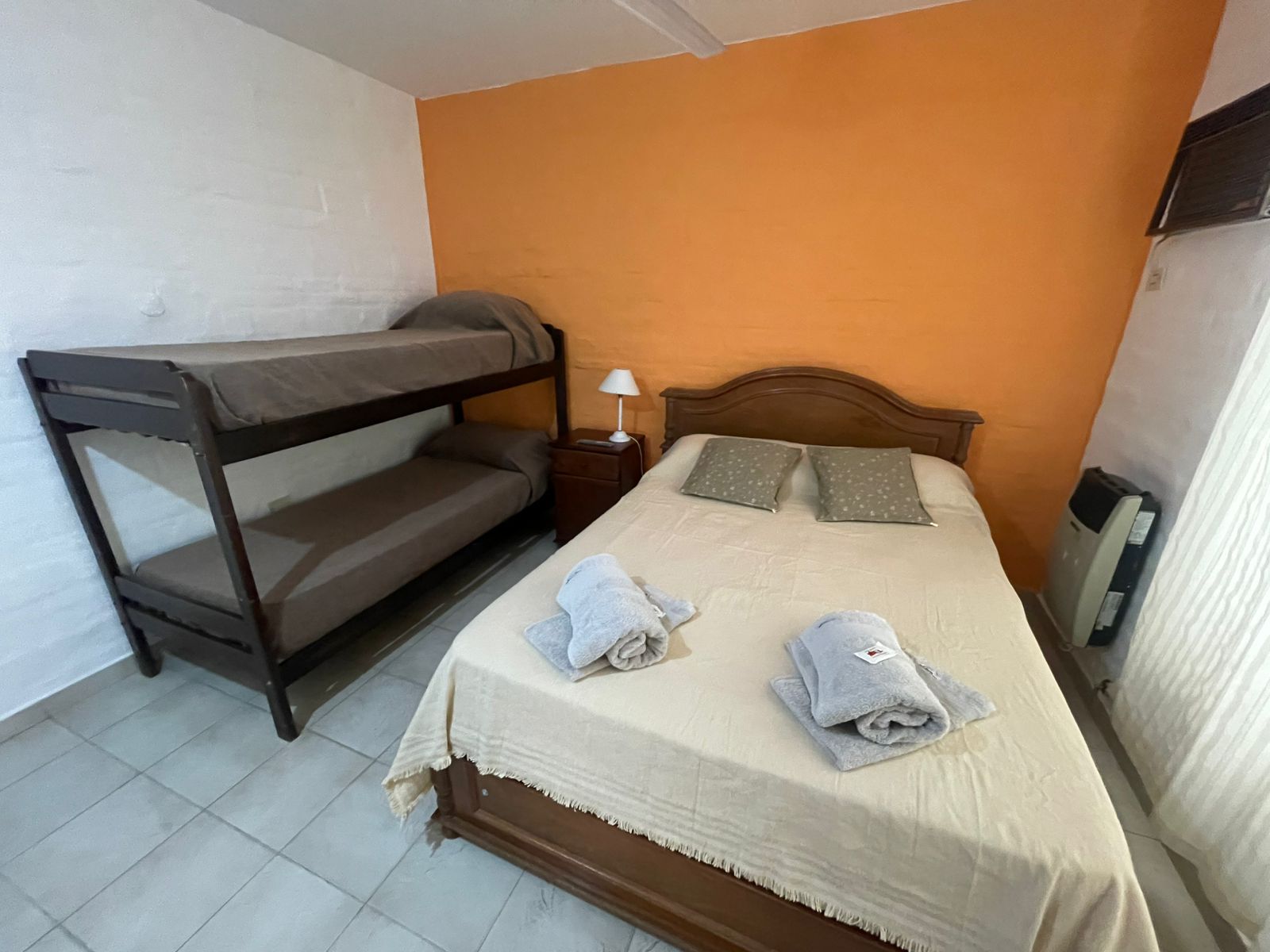 Dormitorio: Cama dos plazas de 1.40×1.90mts, cama cucheta, ventilador de techo, TV Smart 32’, calefactor de tiro balanceado, mesa de luz, velador.